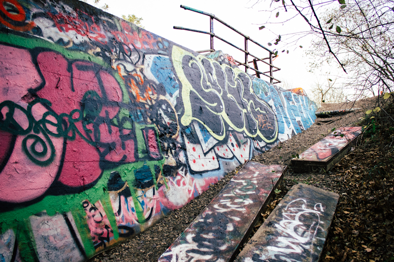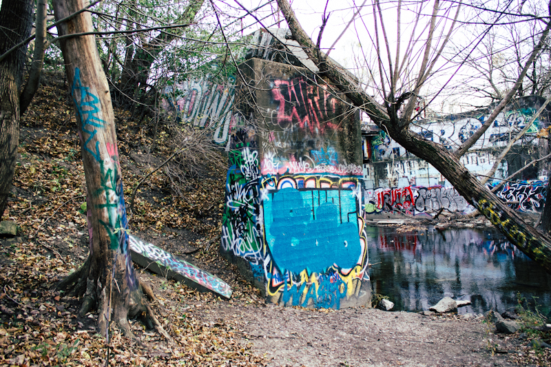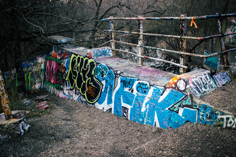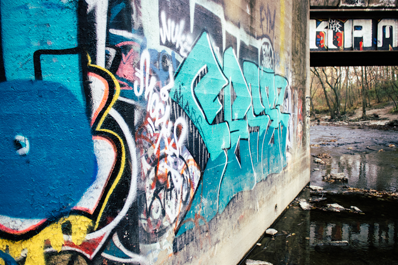 I stumbled upon a bridge that was covered in a multitude of colorful graffiti. Graffiti Heaven as I call it. I was in awe. It looked amazing, and I could have spent hours here photographing all the details from every angle.